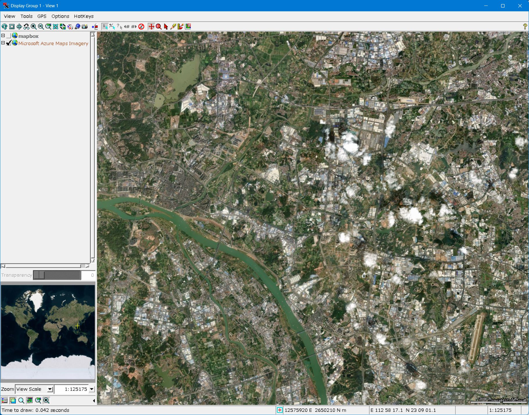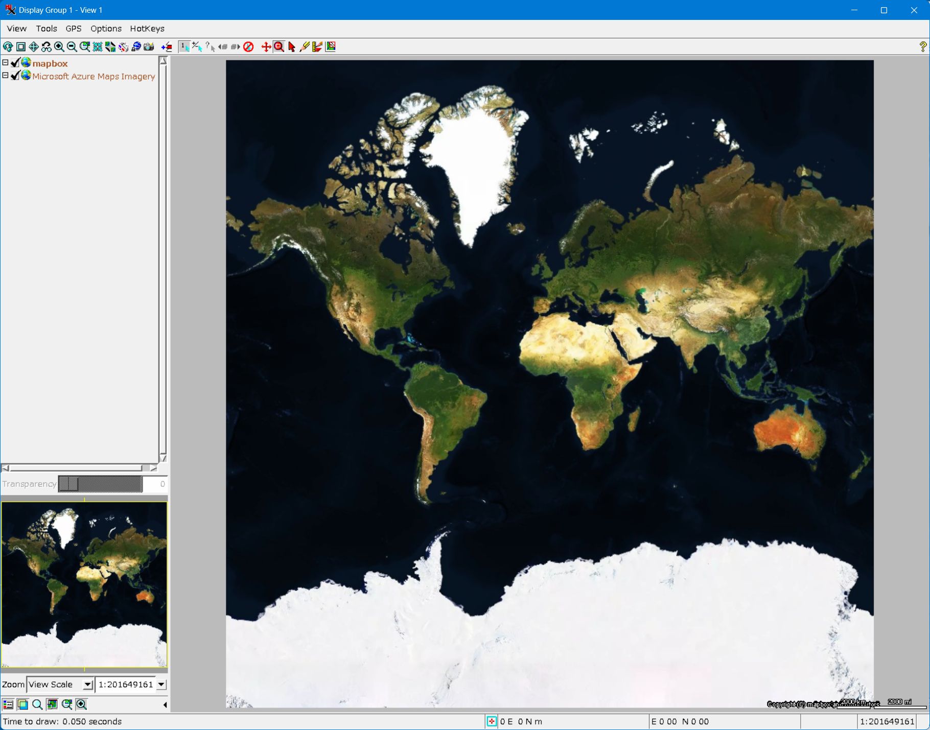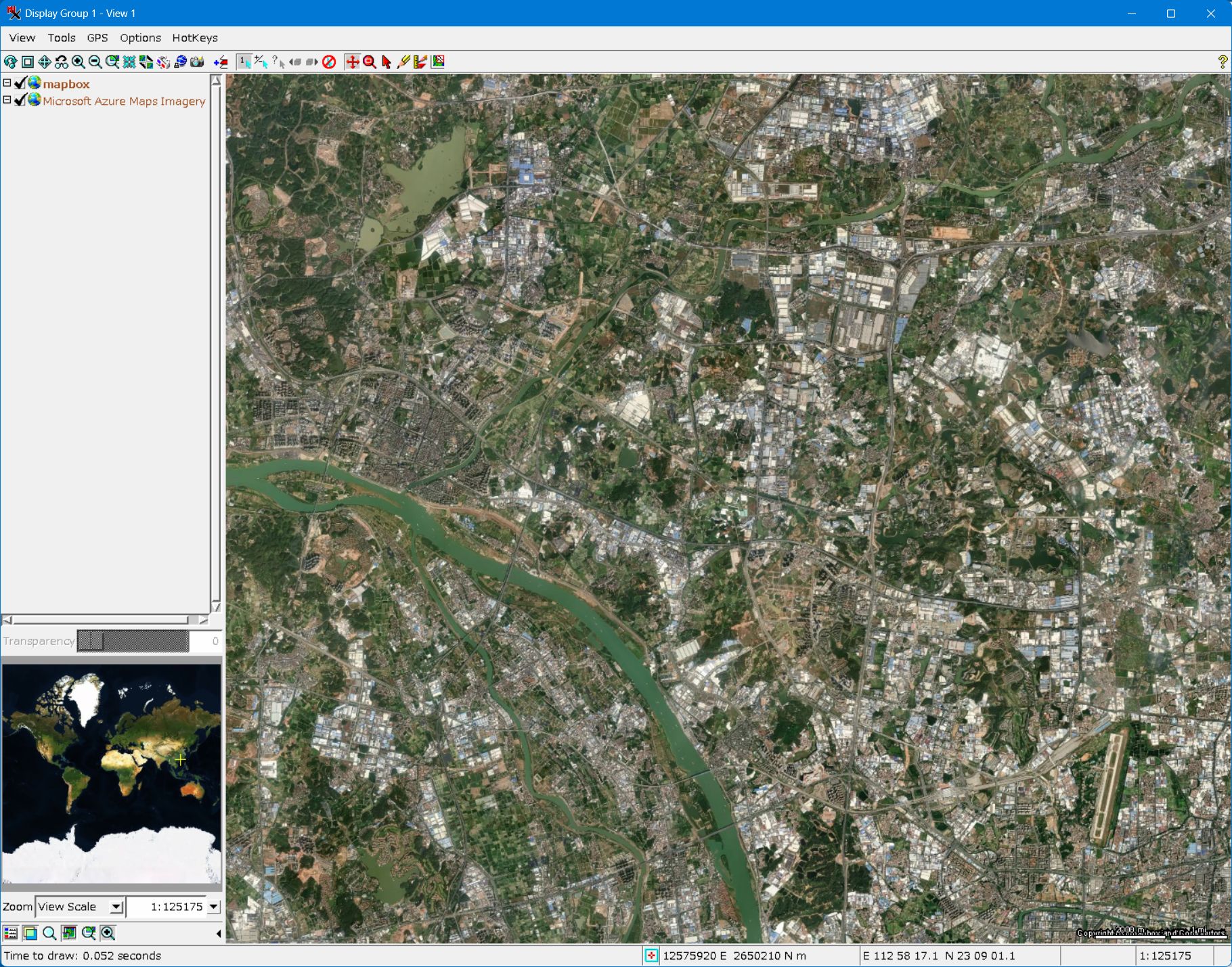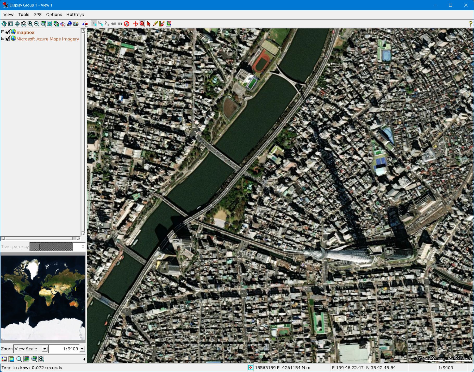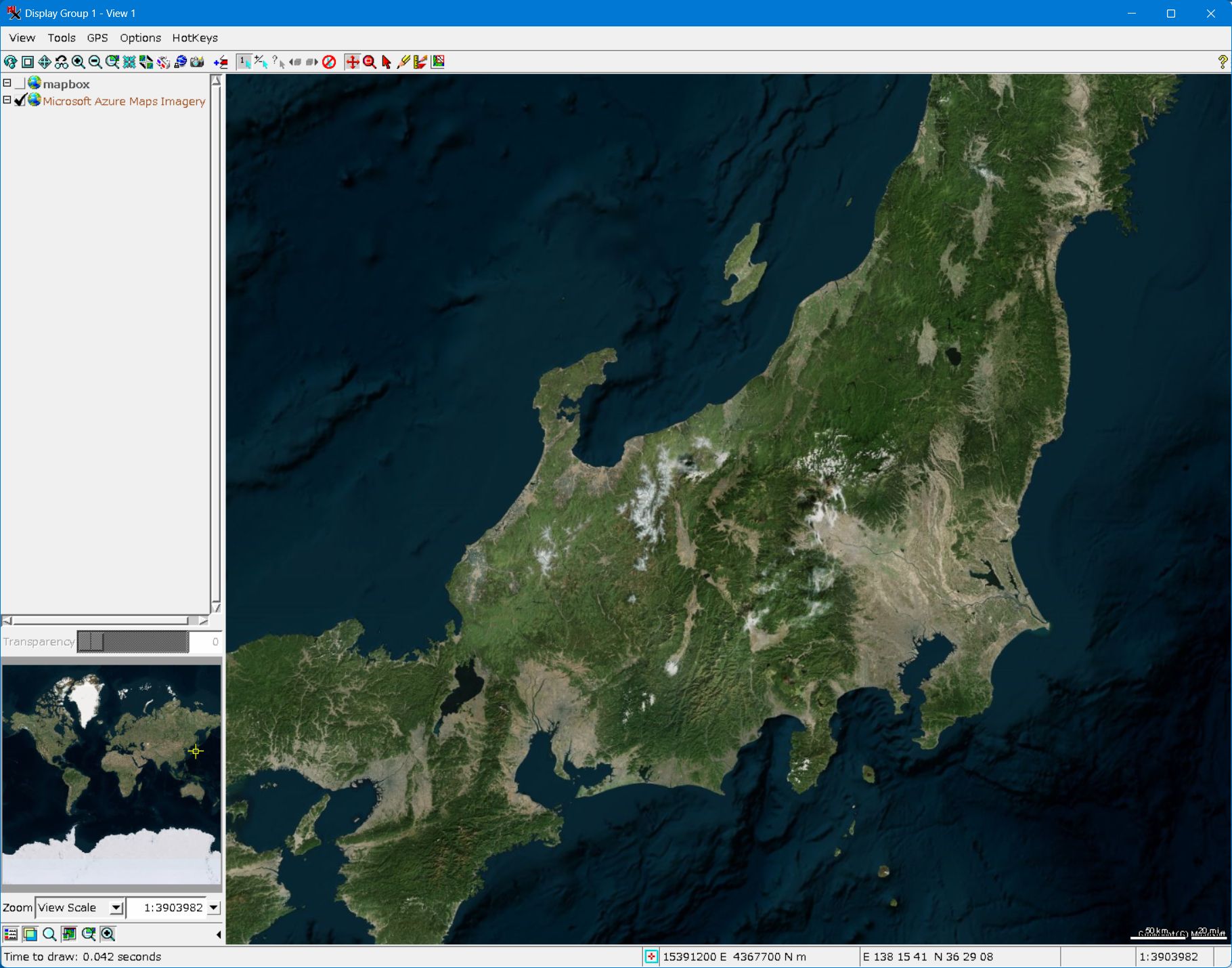 - Mapbox を立ち上げると、Azure Maps の衛星画像 (Imagery) と同じような画像が現れます。