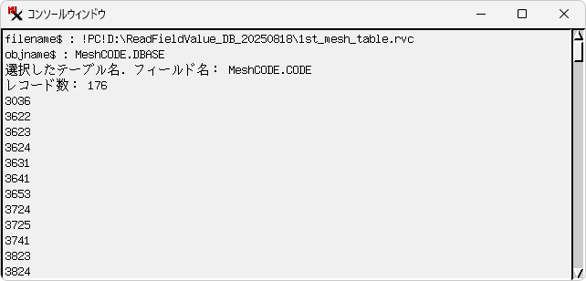 選択した情報とフィールド値がコンソールに表示される。(数値フィールドに対応)