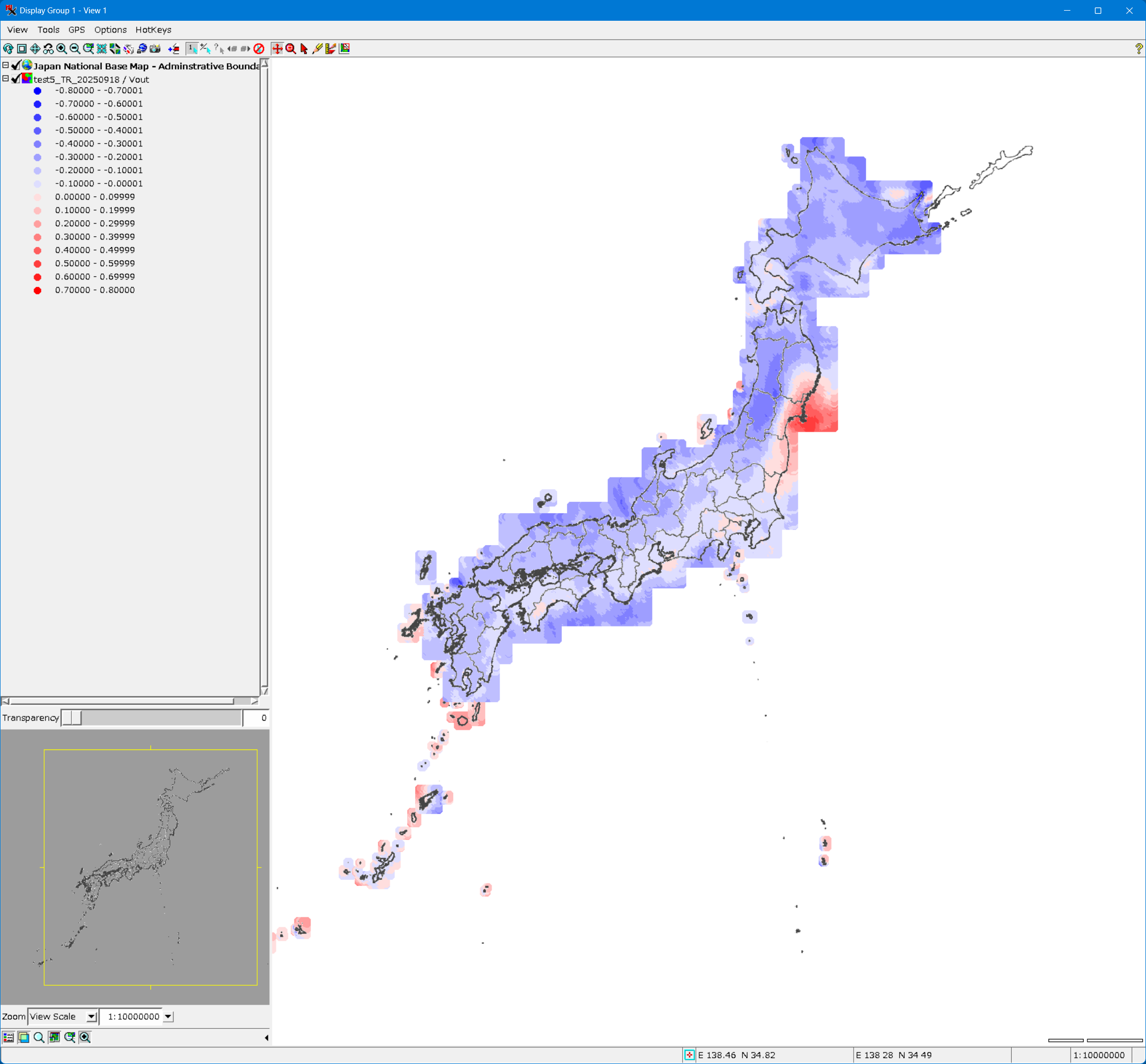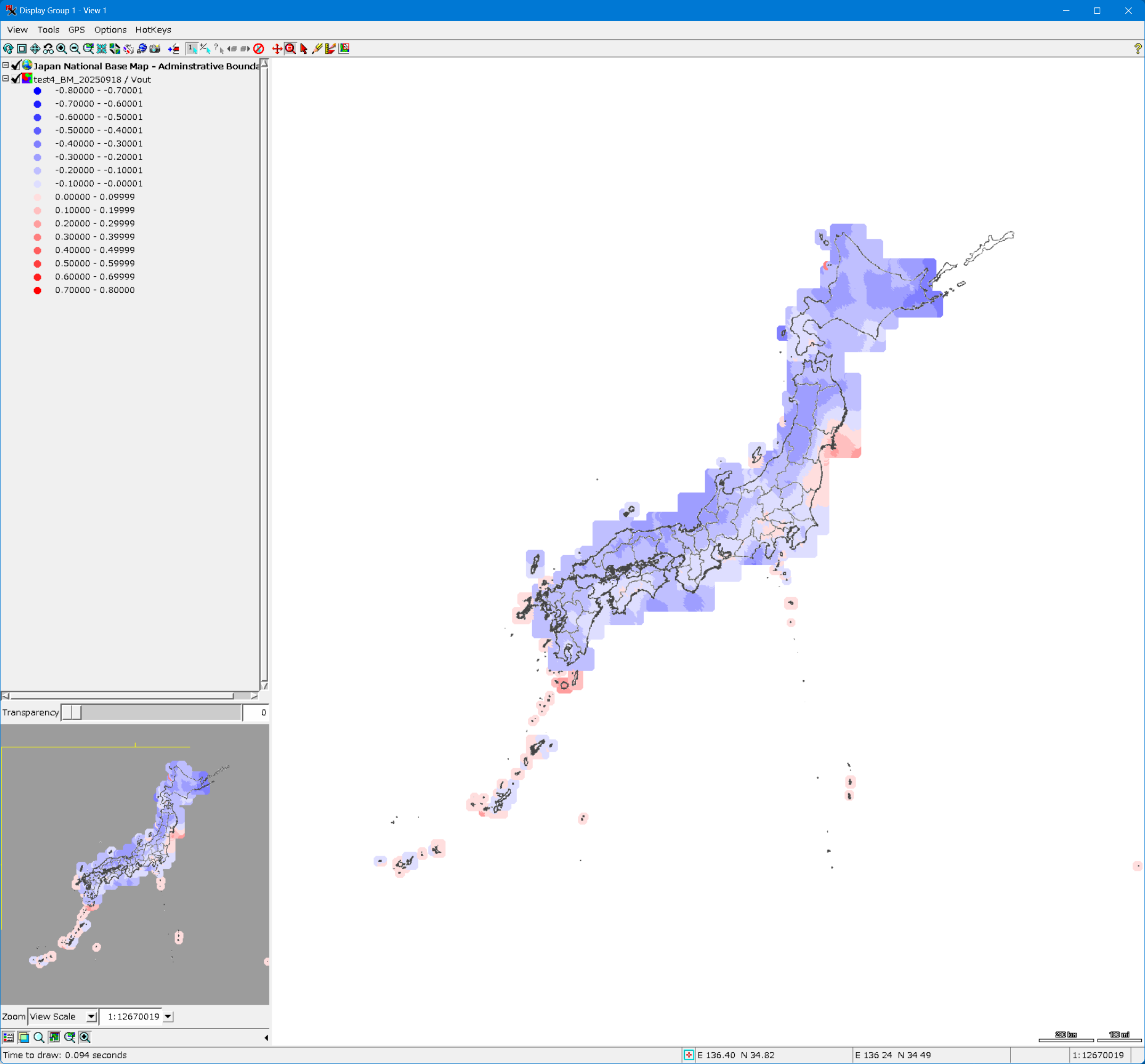 読み込んだ標高の補正量(水準点、三角点)に地理院と同様の凡例を適用して表示
