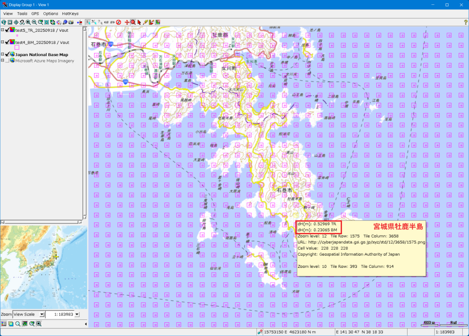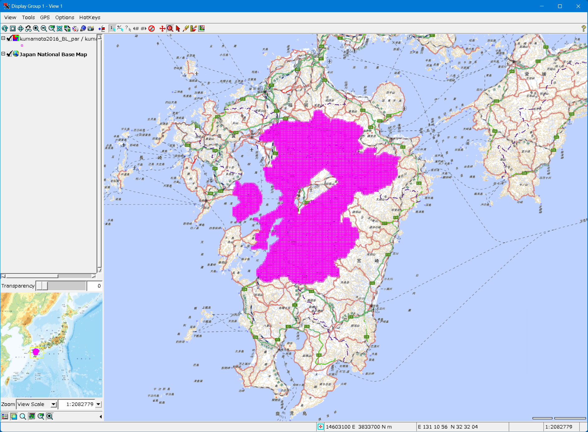 - 今回取り込んだ座標パラメータファイルの1つ(kumamoto2016_BL_par.rvc)を表示してみました。