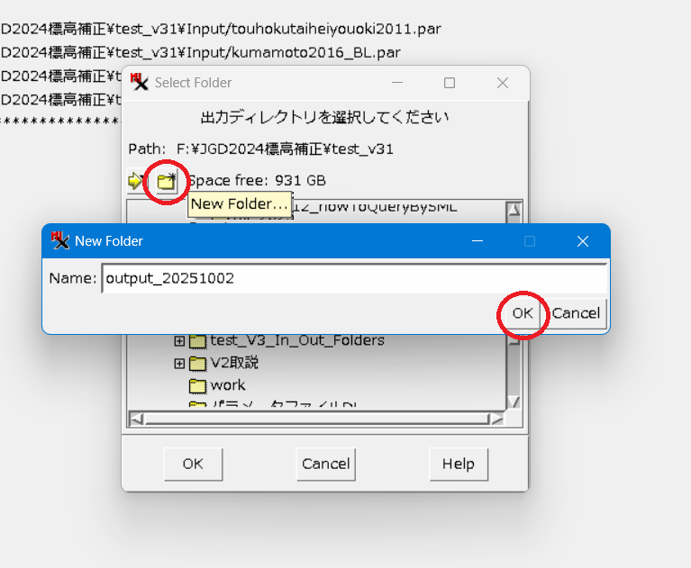 - 実行を開始すると、最初に座標・標高補正パラメータファイルが格納されたフォルダーの選択を求められるので、該当するフォルダーを選択します。