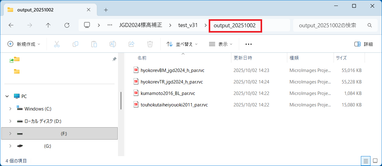 - RVC ファイルの名称は、間違いを防ぐため、入力の座標・標高パラメータファイル名と同じになるようにしました。