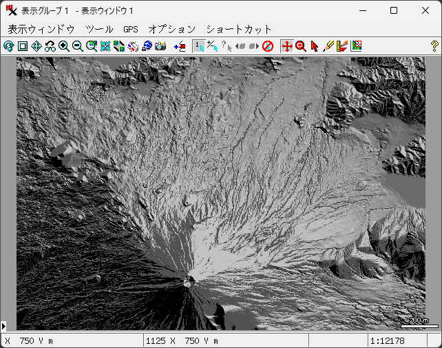 モザイクしたラスターの表示例。