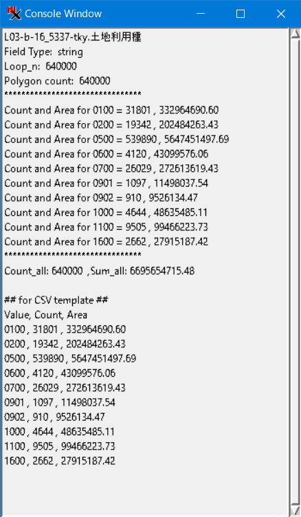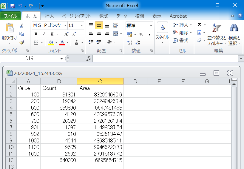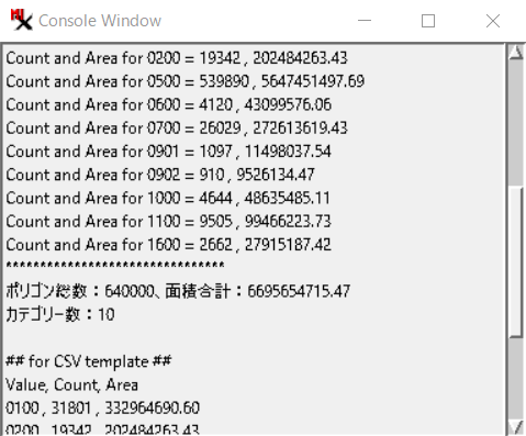 - 出力ディレクトリには、集計結果を含む CSV ファイルが出来る。