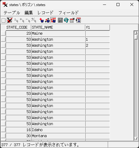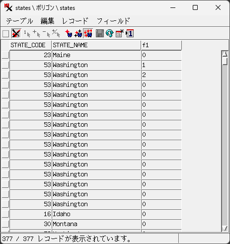 ベクタポリゴンの空白行の属性を0に変える