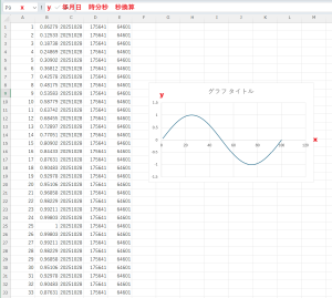 - C列が年月日、D列が時分秒です。E列は D の時分秒を秒に換算したもの。