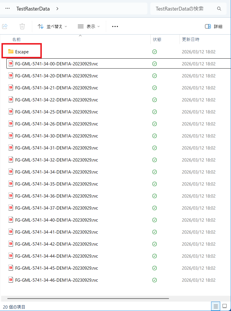 - 新たに作られた Escape というサブフォルダーの中には、移動した9個の RVC ファイルが入っています。これらが全部ヌルのラスターを含む RVC ファイルとなります。