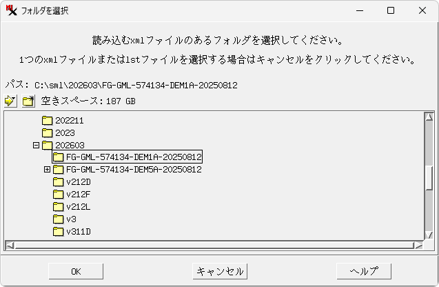 - 読み込む xml ファイルのあるフォルダを選択して、[OK] ボタンを押します。