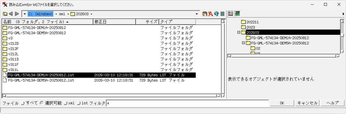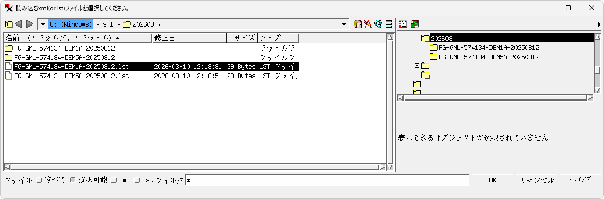 選択したフォルダにリストファイル(xmlfile.lst)が自動で作成されます。