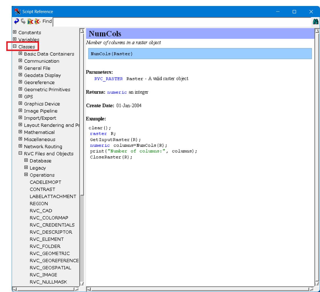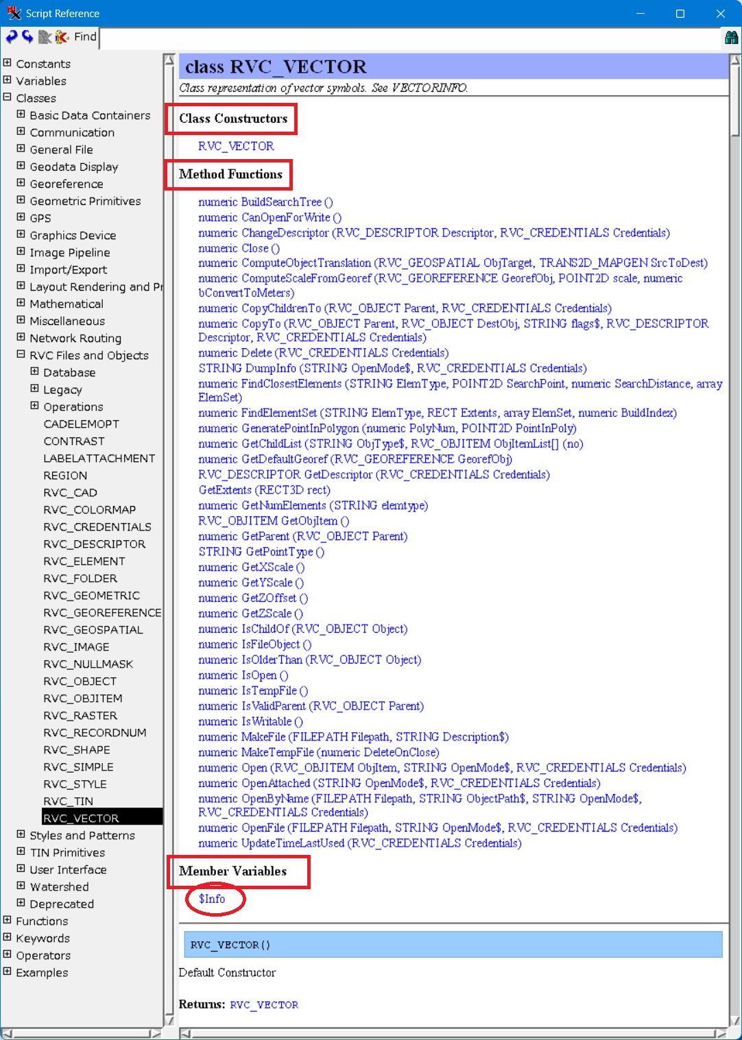 - Classes をクリックし、RVC Files and Objects を経由して、最後に RVC_VECTOR をクリックします。