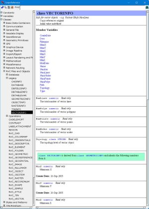 - リンクの付いた青地で表示された "VECTORINFO" の上をクリックします。NumPolys を含む全てのメンバー変数のリストが表示されます。