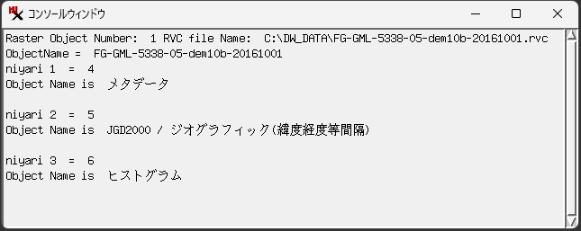 コンソール出力例。