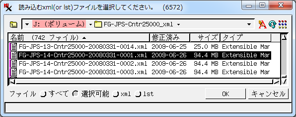 インポート SML を実行してから、インポートする .XML ファイルを指定するウィンドウのところでリストファイルを指定すると、プログラムが自動的に複数ファイルインポートモードに切り替わります。