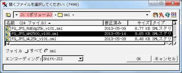 ダウンロードしました SML スクリプト用のファイルを選択して、[OK] ボタンを押します。