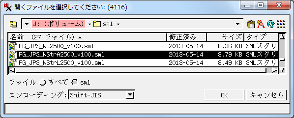 ダウンロードしました SML スクリプト用のファイルを選択して、[OK] ボタンを押します。