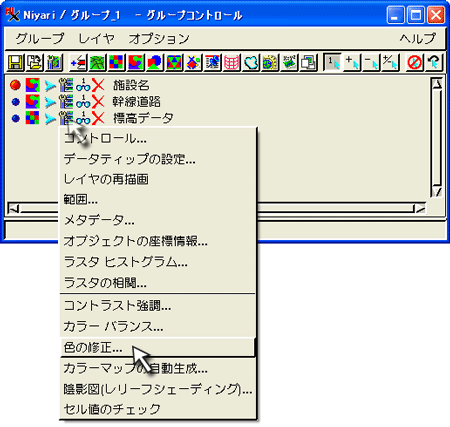 レイヤ情報の確認 各レイヤごとの設定情報 |