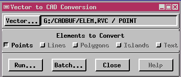 2.Vectorボタンを押して、ベクタを指定。Element to Convertにより、変換する図形を指定する。(つまりベクタの中にポイント以外の図形がある場合、ポイントのみとして抽出することができる)。