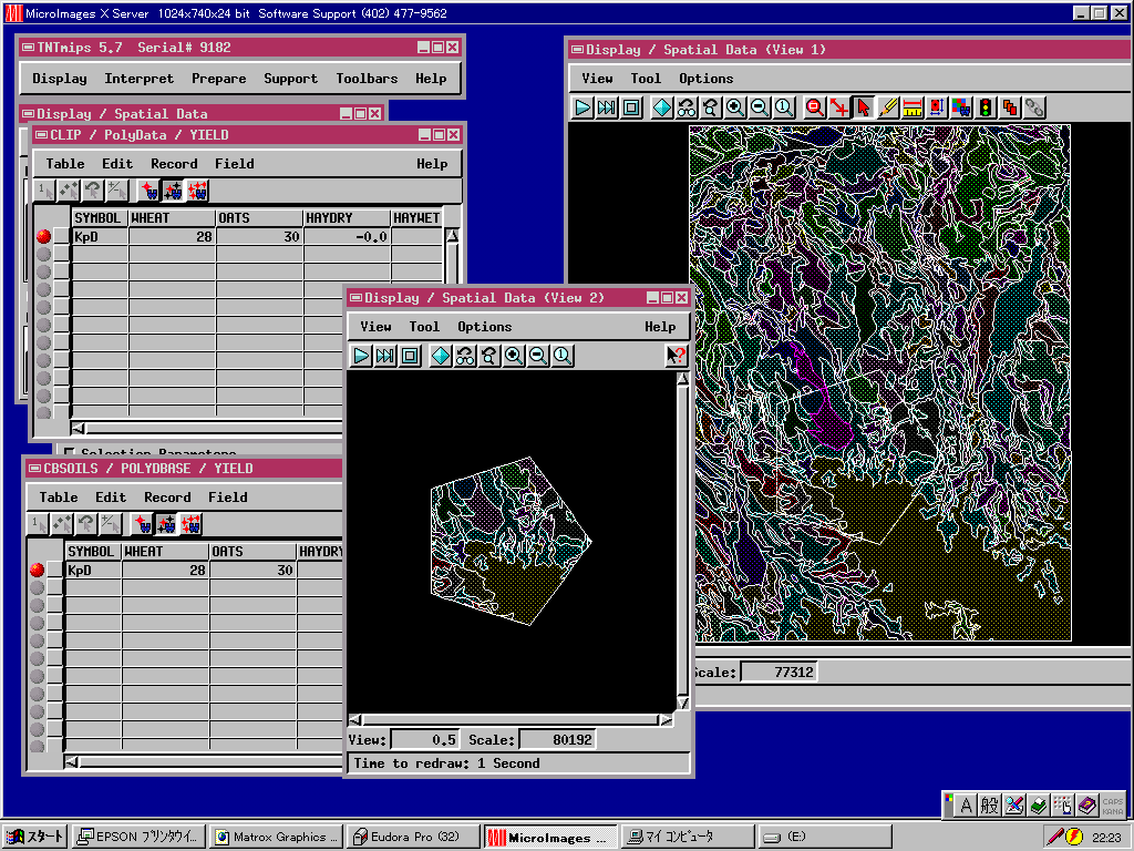 ベクタの切り出し、例えば県境界で植生図を切り出す時の方法を紹介します。切り出すベクタは当然ポリゴンになります。 1.Prepare/Vector/Combineを選択。 2.Operationから、Extract Inside and Clipを選択。 3.SourceのSelectボタンを押し、切り出される方(例えば植生図)のベクタを選択。 4.LinesとPolygonsはALLにする。 5.OperatorのVectorボタンを押し、切り出す方(例えば県境界)のベクタを選択。 6.Element TypeはPolygon,Select ALLでよいです。 7.Runボタンを押し、切り出し後のベクタ名を指定します 8.Exitで終了。 9.DisplayやEditで結果を確認します。図形だけでなく、属性も切り出されています、