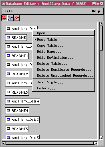 ![]() 中身を表示する自分で作成したデータベースはともかく、多くの場合は、外部からインポートしたり、既に組み込まれたデータベースオブジェクトが、 プロジェクトファイル内に存在していると思います。 そんな、実はよくわからないデータベースオブジェクトの中身を TNTmips内で確認する方法について解説します。 ▼TNTmipsを起動して、メインメニューより 「 Edit/Attribute Databases... 」を選択します。 ![]() ▼Select Objectダイアログが現れるので、 中身を確認したいデータベースオブジェクトを選択します。 選択できましたら、OKボタンをクリックしてください。 ![]() ▼すると、Database Editor ダイアログが表示され、 データベースの各要素が、枠内に配置されます。 そこで、中身を確認したい要素をダブルクリックするか、 右クリックで、メニューを表示し、「 Open 」を選択してみてください。 ![]() ▼このように、データベースの中身がEXCELのようなセルに格納されて表示されます。 ちなみに、各列の順番は、マウスでドラッグすることで、移動できます。 ![]() これで、よくわからなかったデータベースオブジェクトの中身がはっきりするでしょう。 また、このデータをEXCELなどの表計算ソフトへ出力する方法については、 次の作業をご覧ください。 ひとまず、お疲れ様でした。 |