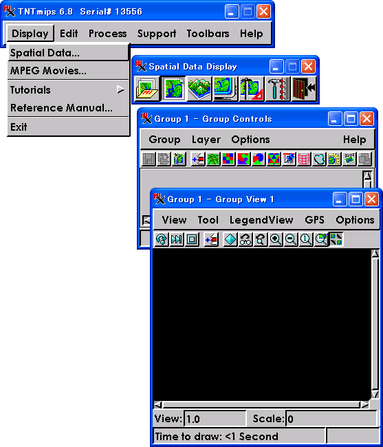 最初にWelcome ウィンドウが現れますので、中身をよく読み OK ボタンを押しましょう。ver6.8 以前の TNTmips をお使いの方は、projsys.usr のセットも済んでいるか、ご確認ください。