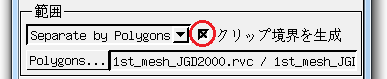 ▼[範囲]パネルの[全体]の横のボタンを押し、"Separate by Polygons"を選びます。