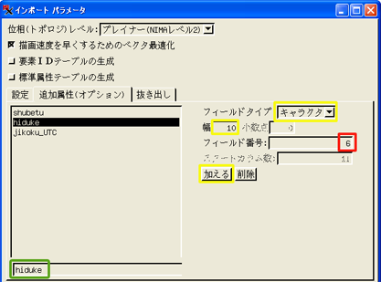 ▼[加える]ボタンをクリックし、緑枠内の名前を“shubetu”に変えます。