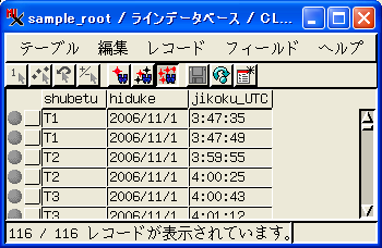 “種別”は1列目、“日付”は6列目、“時刻(UTC)”は7列目になります。