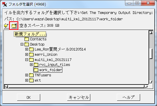 ▼最後に、[出力フォルダ]ボタンを押して、KMLファイルを出力するフォルダを指定します。