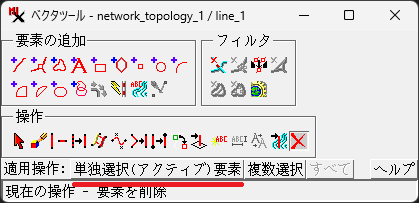 - 2本目のラインを入れ直すので、先ほど選択したラインを削除しましょう。ベクタツールの[削除]ボタンを使って行います。