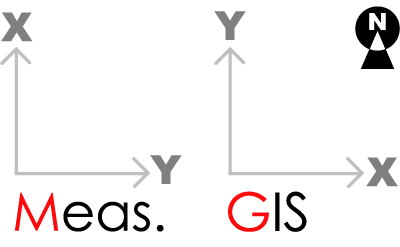 ●3. X-Y の向きに注意 測量の XY と GIS の XY の違い |