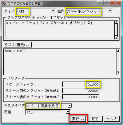▼HEADERファイルに書かれているラスタの左下の座標と右上の座標を参考に、4隅の座標を入力します。