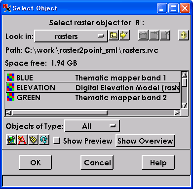Subject: [ts-mag:00090] OpenGIS Mail Magazine for T.S.U 【第 83号】 Date: Thu, 23 Jan 2003 21:04:11 +0900 From: Taichi FURUHASHI OpenGIS Mail Magazine for Technical Support Users 2003/1/24 Keywords: OpenGIS,TNTmips,Raster2Vector,Alt-Drag,ODBC,avi,MapInfo オープンGIS テクニカル・サポート専用メールマガジン 第83号「 ラ ス タ で 考 え る 人 、 ベ ク タ で 考 え る 人 」 ################################################################# 株式会社 オープンGIS GIS を使っている方と話をしていると、よく「この人はラスタ・タイプ? それともベクタ・タイプかな。」と考えることがあります。 新手の性格判断... いえいえそうではなく、ある処理を行う際に、ラスタデータとして扱う場 合とベクタで扱う場合で、それほど作業量が変わらないとします。このと き、人によってどちらで処理をするのか、偏りがはっきりでてくることが あるのです。時には、作業量は圧倒的にベクタで処理したほうが効率が良 いという場合でも、無理矢理ラスタ処理に持ち込んで結果を出す、なんて こともあります(普段使い慣れているデータ処理の方が、多少効率が悪く ても作業の流れが見えやすいので、これもまた賢明の判断なのです)。 例えば、国土地理院さんの「数値地図50m 標高」を手にしたとしましょう。 このデータを頭に浮かべると、人によってはラスタデータを想像する人も いますし、高さ情報を持ったポイントデータとして想像する人もいます。 どちらが優れているという訳ではありません。それぞれ利点もあり欠点も あります。逆に言うと、相互のデータ形式を自在に操ることができたなら ば、ラスタやベクタといった形式に偏ることのない、ラスタ・ベクタ両刀 使いになれるわけです。 ● さて、相変わらず前置きが長いですが、ラスタ処理・ベクタ処理の両方を 得意とする TNTmips には、これらデータ形式を相互に変換する機能が備 わっております。 厳密に言うと、ラスタ、ベクタ、CAD、TIN、そしてリージョンという5 種類のデータをそれぞれ相互に変換できます。 【TNTmips で可能なデータ変換機能】 コンバート(Process/Convert)機能を使うと ・ラスタ → ベクタ(ライン中心抽出) ・ラスタ → ベクタ(境界線抽出) ・ベクタ → ラスタ ・ベクタ → CAD ・CAD → ベクタ ・TIN → ベクタ ・2D ベクタ → 3D ベクタ(ラスタから高さを転写) サーフェスモデリング(Process/Surface Modeling)機能を使うと ・ラスタ ←→ ベクタ(等値線相互変換) ・TIN ←→ ベクタ(等値線相互変換) ・ラスタ ←→ TIN ・ベクタ → ラスタ(空間内挿変換) また、メルマガ第69号(2002/10/11)でご紹介したテクニックを使えば ・ベクタ → リージョン ・リージョン → ベクタ ・ラスタ → リージョン 相互変換が可能です。 はたまた、メルマガ第71号(2002/10/25)でご紹介した SML を使えば ・等値線ラインベクタ → 段彩ポリゴンベクタ もできます。 ● しかし、まだまだ変換機能として十分ではありません。 例えば「 ラスタ → ベクタ(ポイント変換) 」。 一度、ラスタ形式でインポートした標高データを、ポイントデータとして 利用したい場合、デフォルトの機能だけでは困ってしまいます。 ならば、機能がなければ作ってしまえ!! というわけで、早速変換 SML を 作りました。 ラスタ → ポイントベクタ変換 SML のダウンロード先はこちらです。http://www.opengis.co.jp/sml/sml_basic/raster/raster2points_v10.sml 具体的な操作方法は次のとおりです。 といっても、読み取るラスタと出力するベクタを指定するだけですので、 非常に簡単です。 ▼まずメインメニューから Process/SML/Run... を選択します。