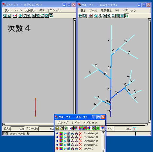 先週使用した流路ベクタ"STDFLOWPATH" に対して、ホートンの次数につ いて処理してみました。 ●集計の結果: