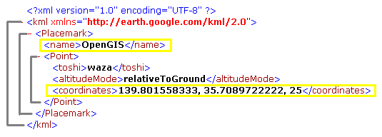 KMLファイルはXMLファイルの一種であり、これが読めるようにな