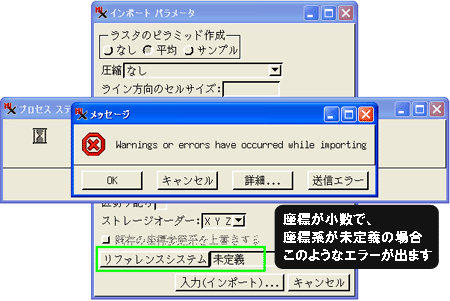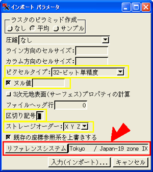 ▼<インポートパラメータ>ウィンドウが開きます。Z値は上で小数点