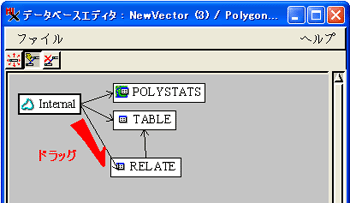 ▼ "RELATE" をマウスドラッグして、"Internal" テーブルに近づけまし