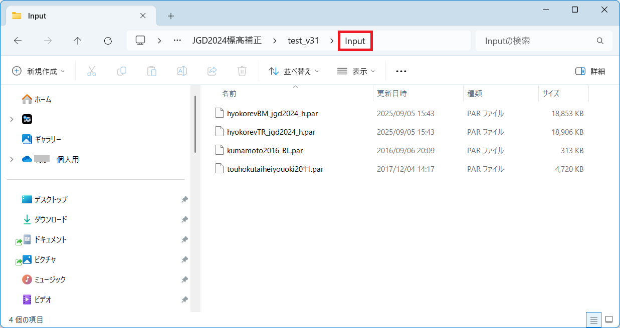 に掲載されている標高補正パラメータファイル、座標補正パラメータファイルが対象です。 - 実行前に、あらかじめ変換する座標、標高パラメータファイル(複数可)を解凍して、1つのフォルダーに格納します。
