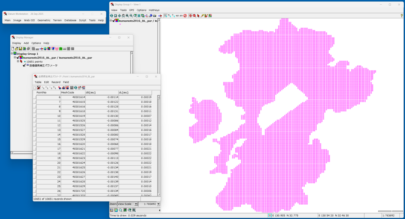 - 今回取り込んだ座標パラメータファイルの1つ(kumamoto2016_BL_par.rvc)を表示してみました。