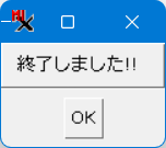 - 処理が終了すると、終了しましたのウィンドウが出ます。