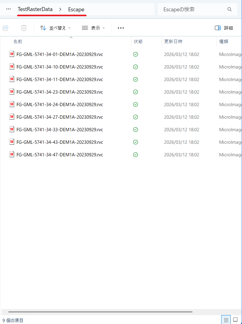 - 新たに作られた Escape というサブフォルダーの中には、移動した9個の RVC ファイルが入っています。これらが全部ヌルのラスターを含む RVC ファイルとなります。