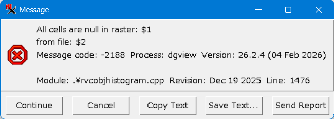 - 全ヌルのラスターを表示しようとすると、図のようなメッセージが出ます。