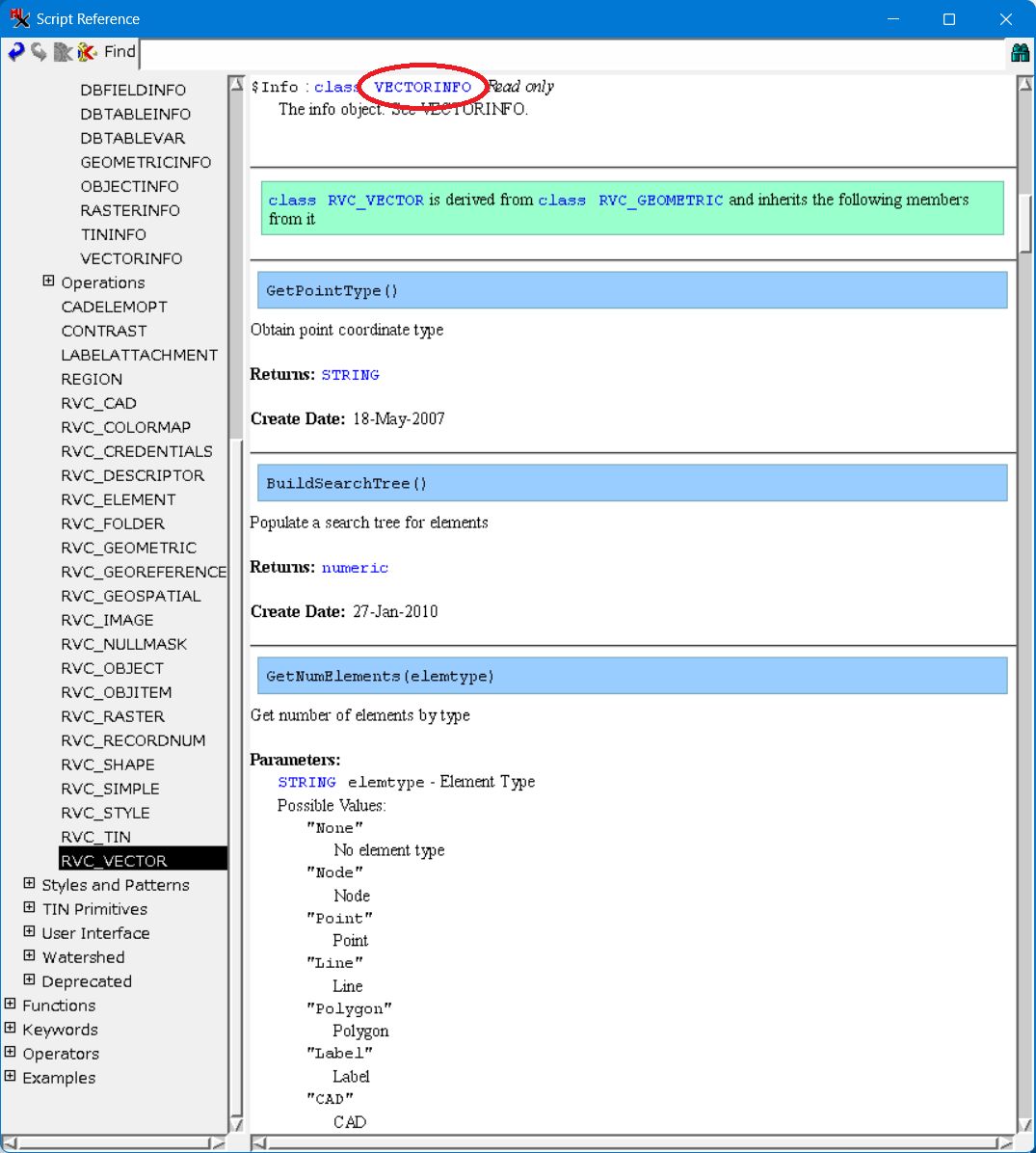 一番上に、$Info : class VECTORINFO Read only The info object. See VECTORINFO.
