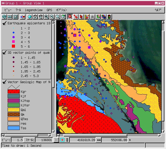 - ArcViewライクな表示機能の導入;TNTグラフィック・レンダリング・エンジン;測定ツール,リージョン等;Xベースのリモート・クライアント/サーバー操作。
