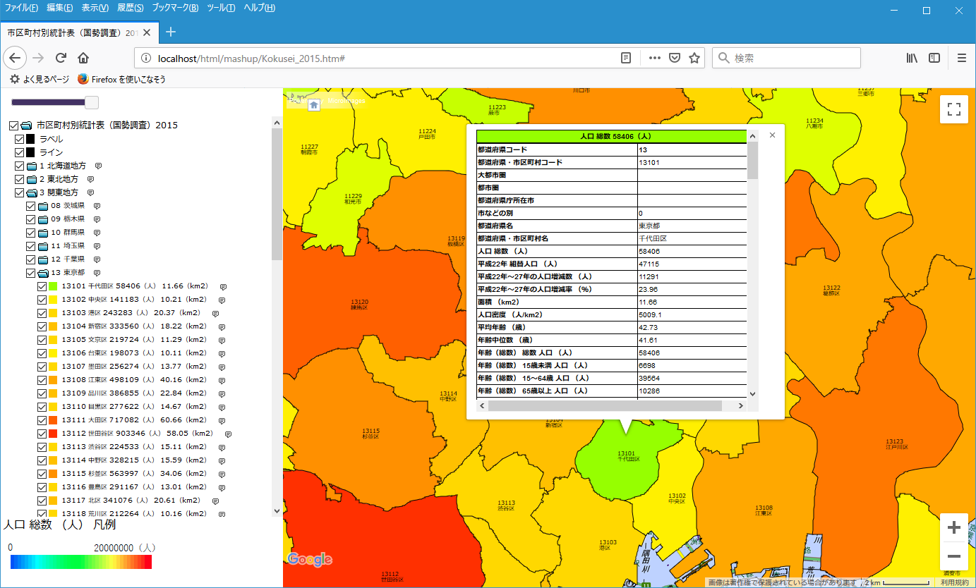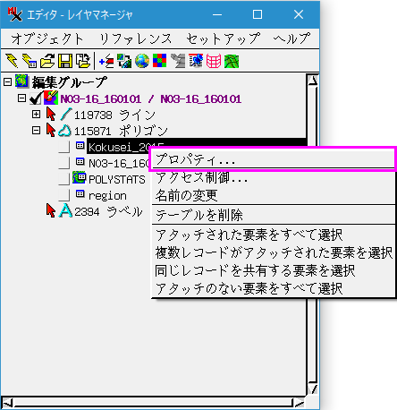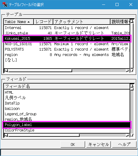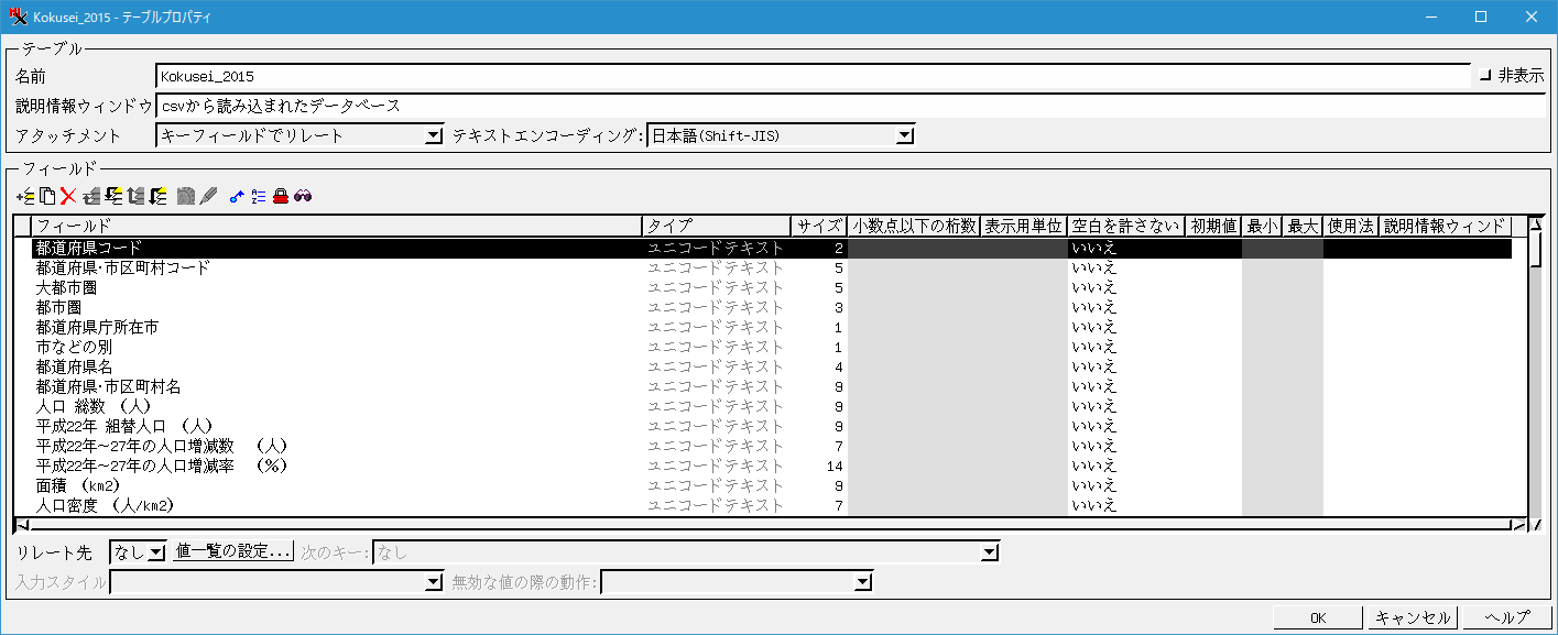 レイヤマネージャからKokusei_2015テーブルを開く。